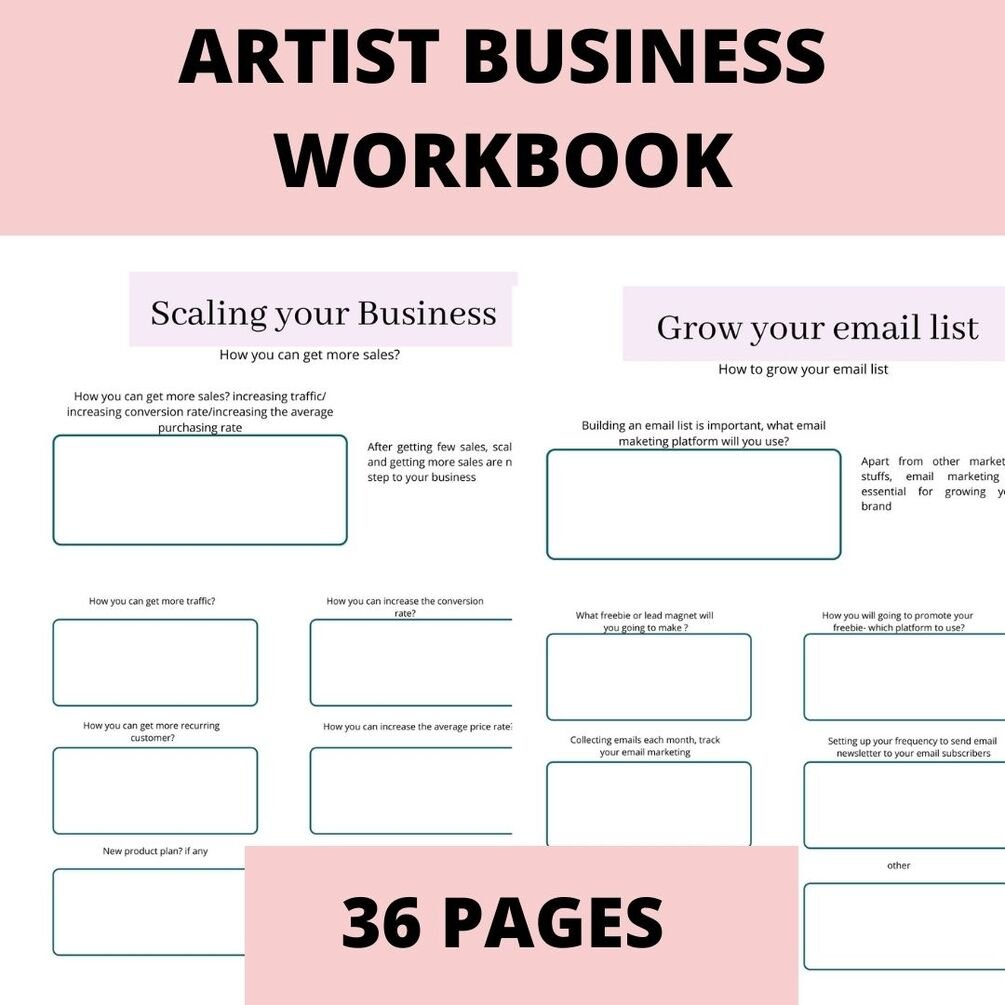 The Artist business Workbook | 36 Pages | PDF Printable File